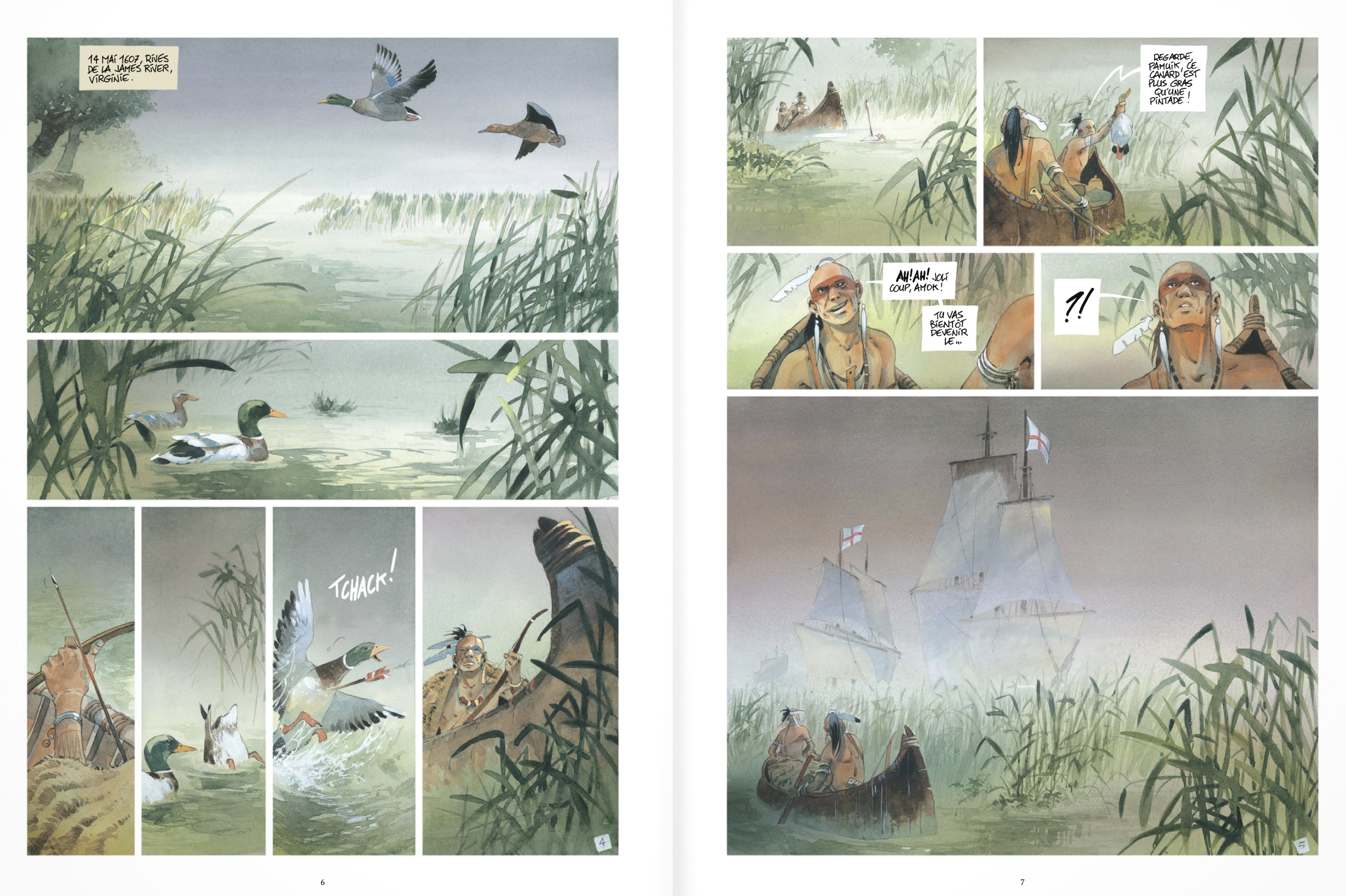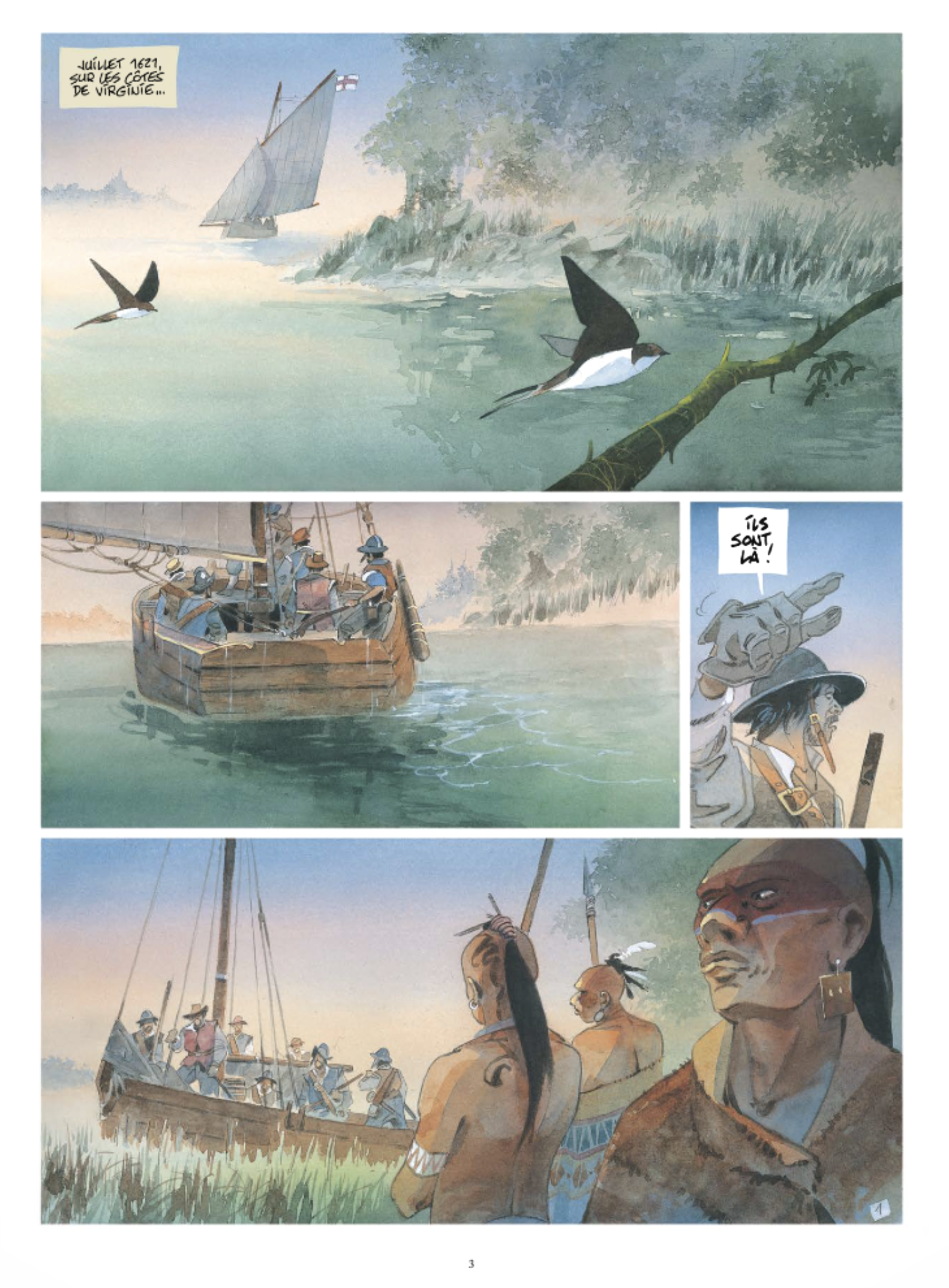 Habitué des récits amérindiens, l’auteur nous offre une nouvelle récréation graphique et fictionnelle de grande qualité. Il semble au lecteur entendre le souffle du vent, les cris des oiseaux, le chant de la nature. Les amoureux d’évasion et de récits de grandes découvertes seront charmés par cette histoire exotique. Les passionnés d’aventure plongeront dans les premiers mois difficiles d’installation d’une troupe anglaise pour préparer l’arrivée des colons.