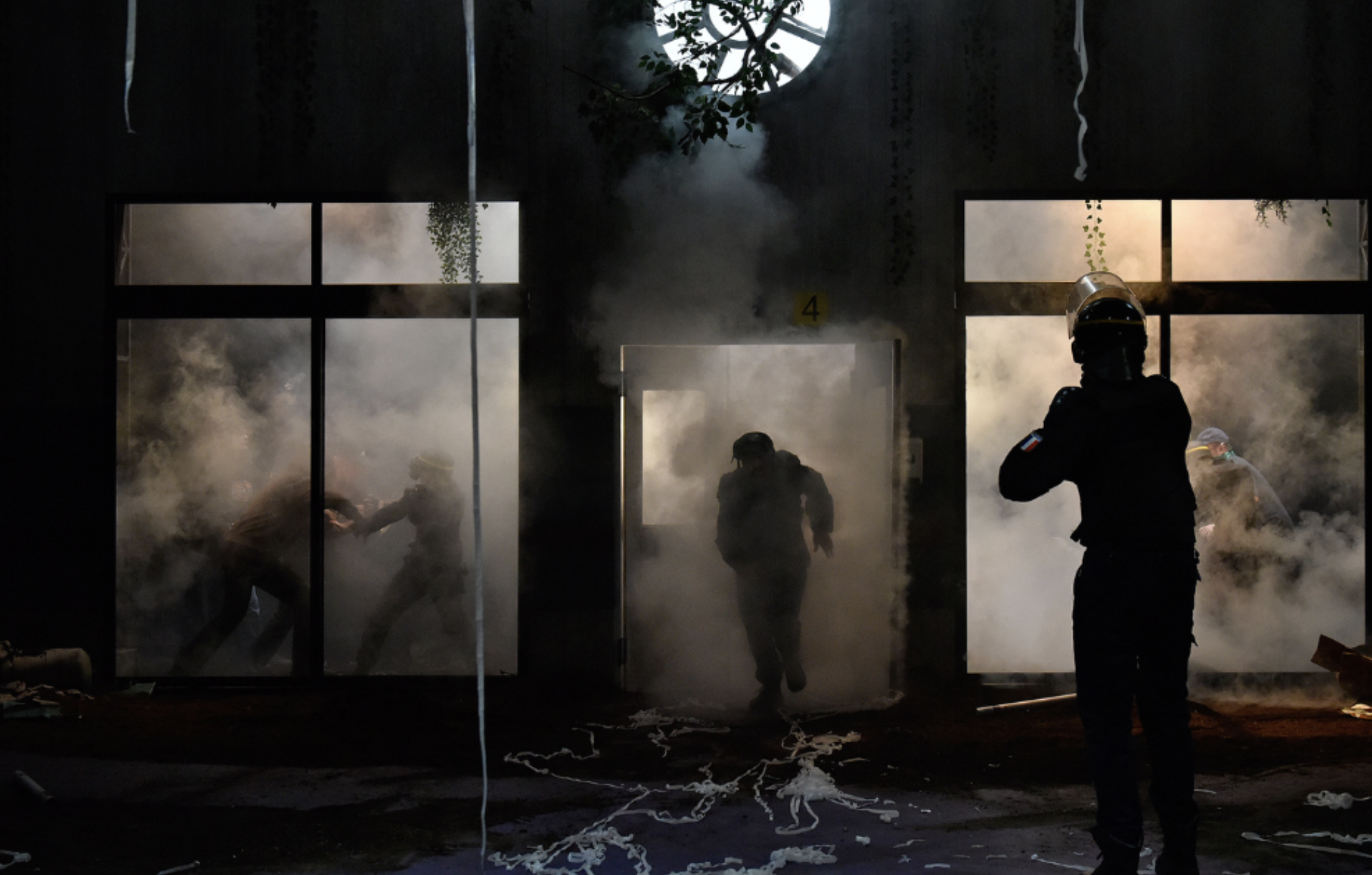 La scène est un décor de cinéma, mouvant. Jouant avec la profondeur de l’espace, les cloisons et les objets bien réels, chaque scénette nous fait entrer dans un pan de notre monde, contribuant au réalisme du spectacle. Les costumes, tout comme l’environnement nous plongent dans ces lieux connus que les comédiens font vivre et raisonner de leurs voix vives.