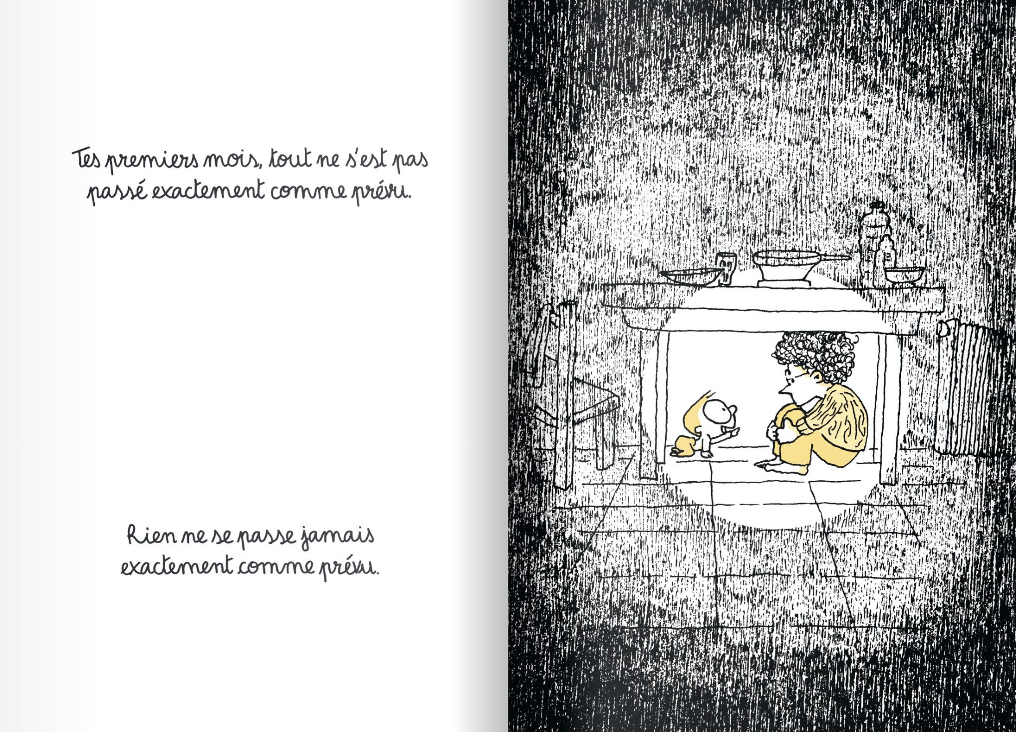 Tes premiers mois est un petit livre très émouvant, à offrir à tous ceux et celles qui ont eu à vivre tout seule.e – de manière forcée ou pas – ce chamboulement de l’arrivée d’un enfant. Et à tous ceux qui savent que l’incroyable bonheur de la parentalité est toujours lié à une étourdissante et angoissante prise de conscience d’un retour en arrière impossible et de l’obligation de devenir solide pour deux maintenant.
