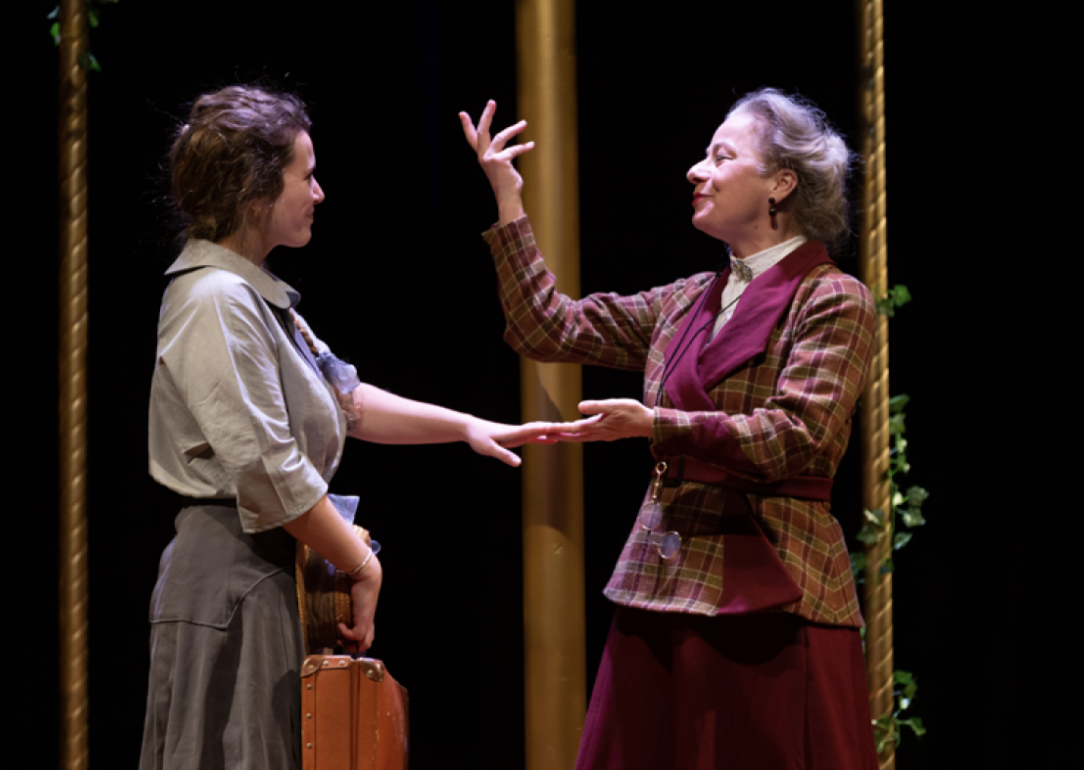 Une sorte de M. Loyal convie le spectateur à un conte, comme aiment à en entendre les enfants qui, adultes, n’oublient pas ces plaisirs lointains. Car, les êtres humains, à la différence des autres espèces, nous rappelle le conteur en frac, ont conscience de leur condition de mortel. Aussi attachent-ils une importance primordiale à l’amour. Tout est, dès lors, en place : l’histoire peut commencer. Amanda, jeune modiste est embauchée au château de la duchesse d’Andinet d’Andaine. Agacée de ne pas savoir quelle sera sa fonction, elle obtient de la maîtresse de maison, après moultes circonvolutions la réponse : elle devra jouer le rôle de « souvenir », pour le neveu de madame, frappé d’une forme de neurasthénie à la mort de celle qu’il croyait être son grand amour, la cantatrice Léocadia Gardi, étranglée par son châle ( allusion franche à la chorégraphe Isadora Duncan). Après bien des prises de bec, de confidences, d’atermoiements, le prince et la petite prolétaire… On devine la fin de cette histoire de fée, tirée de la période « pièces roses » de Jean Anouilh, comprenant Le bal des voleurs, ou Le rendez-vous de Senlis. La duchesse endosse, ici, les habits de la bonne fée, le neveu, lui est le prince charmant.