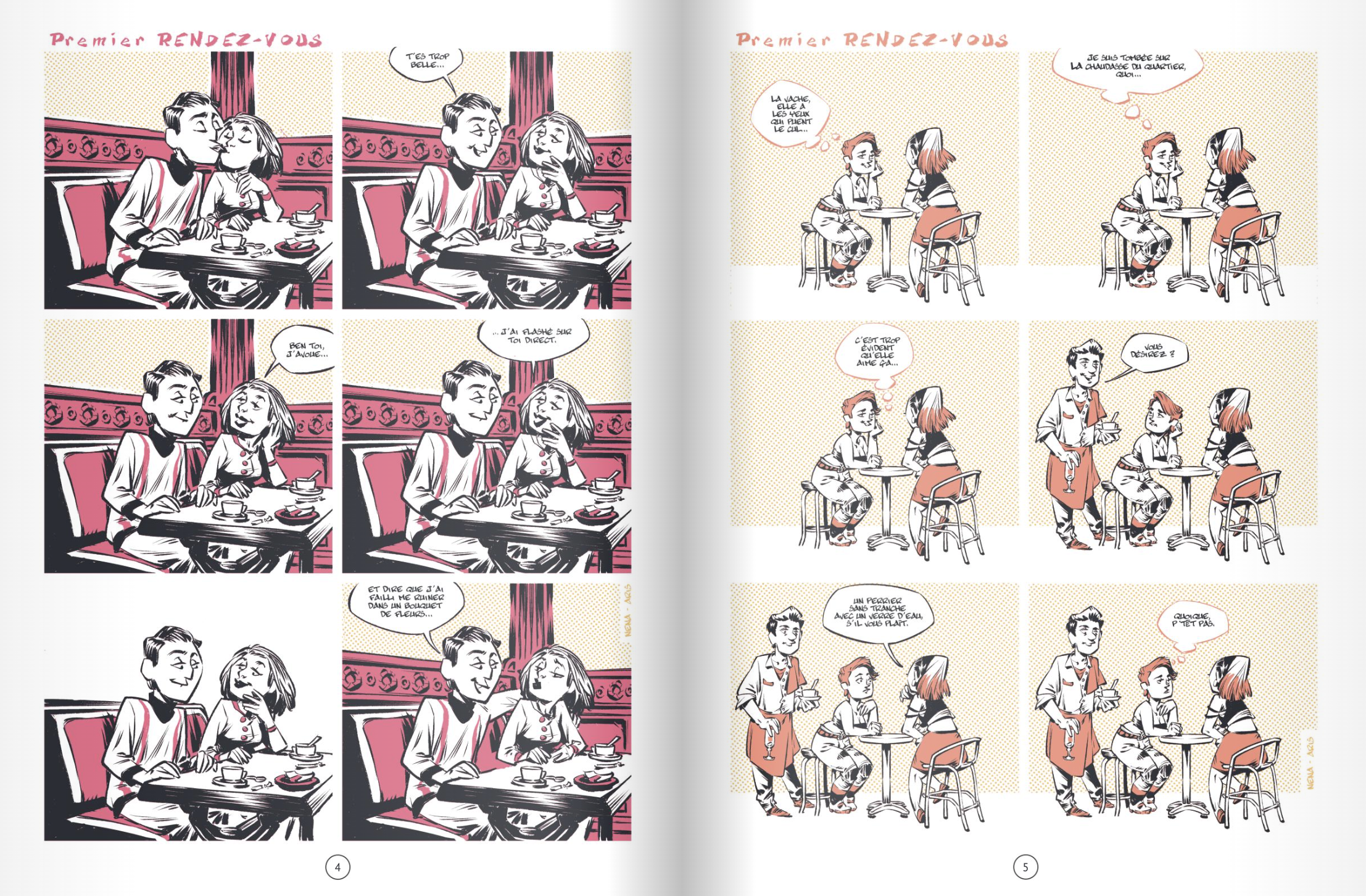 On réalise également à quel point le sexe devient l’obsession ( et l’urgence ) plus ou moins explicite de toutes ces rencontres…et l’on se sent un peu has-been, disons-le, quand on a dépassé la quarantaine et qu’on a gardé une âme un tantinet fleur bleue. Qu’à cela ne tienne ! Cette bande-dessinée sera l’occasion de rire un bon coup, seul(e) ou à plusieurs, entre célibataires ou avec des couples ( pour bien les convaincre de ce à quoi ils échappent, les veinards! ) des incongruités, déboires et orginalités diverses auxquels les premiers rendez-vous, via les sites de rencontres, vous exposent presque à coup sûr!