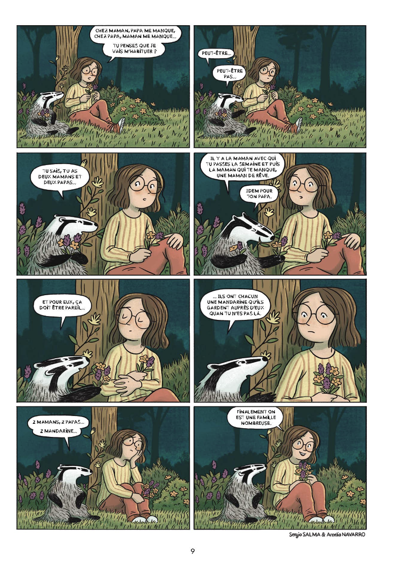 L’équilibre est parfois délicat à assurer pour les enfants de parents séparés. Sergio Salma signe un scénario simple et démontre avec acuité et perspicacité que, malgré tout, même si tout n’est pas facile, avec le temps, avec intelligence et bonne volonté, la vie partagée entre les deux géniteurs peut être enrichissante. Le dessin d’Amelia Navarro accompagne à merveille le scénario et les dialogues. Un très bon moment de lecture, une idée intéressante pour les enfants concernés et à partager ou à offrir aux parents divorcés.