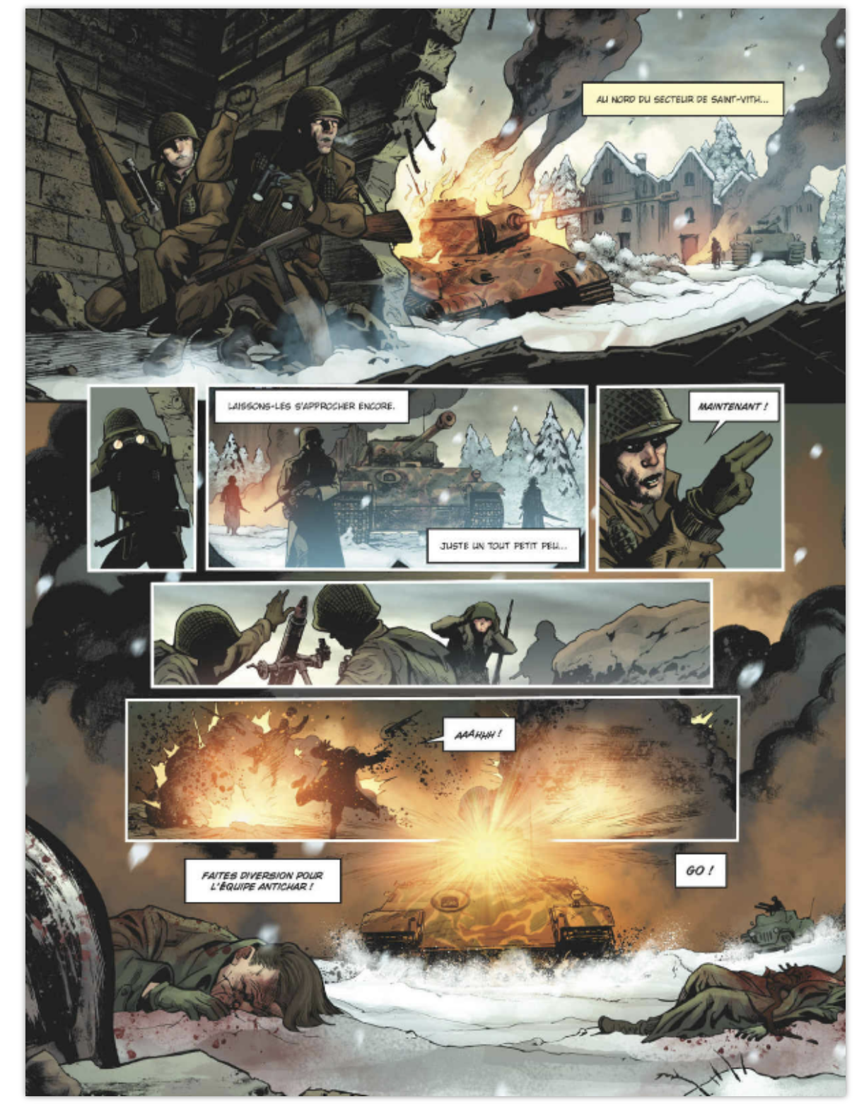 Ce 21 décembre 1944, dans le froid et la neige,  l’équipage d’un panzer allemand va tenter de rejoindre la Meuse en enfonçant les divisions américaines : une mission fort délicate…