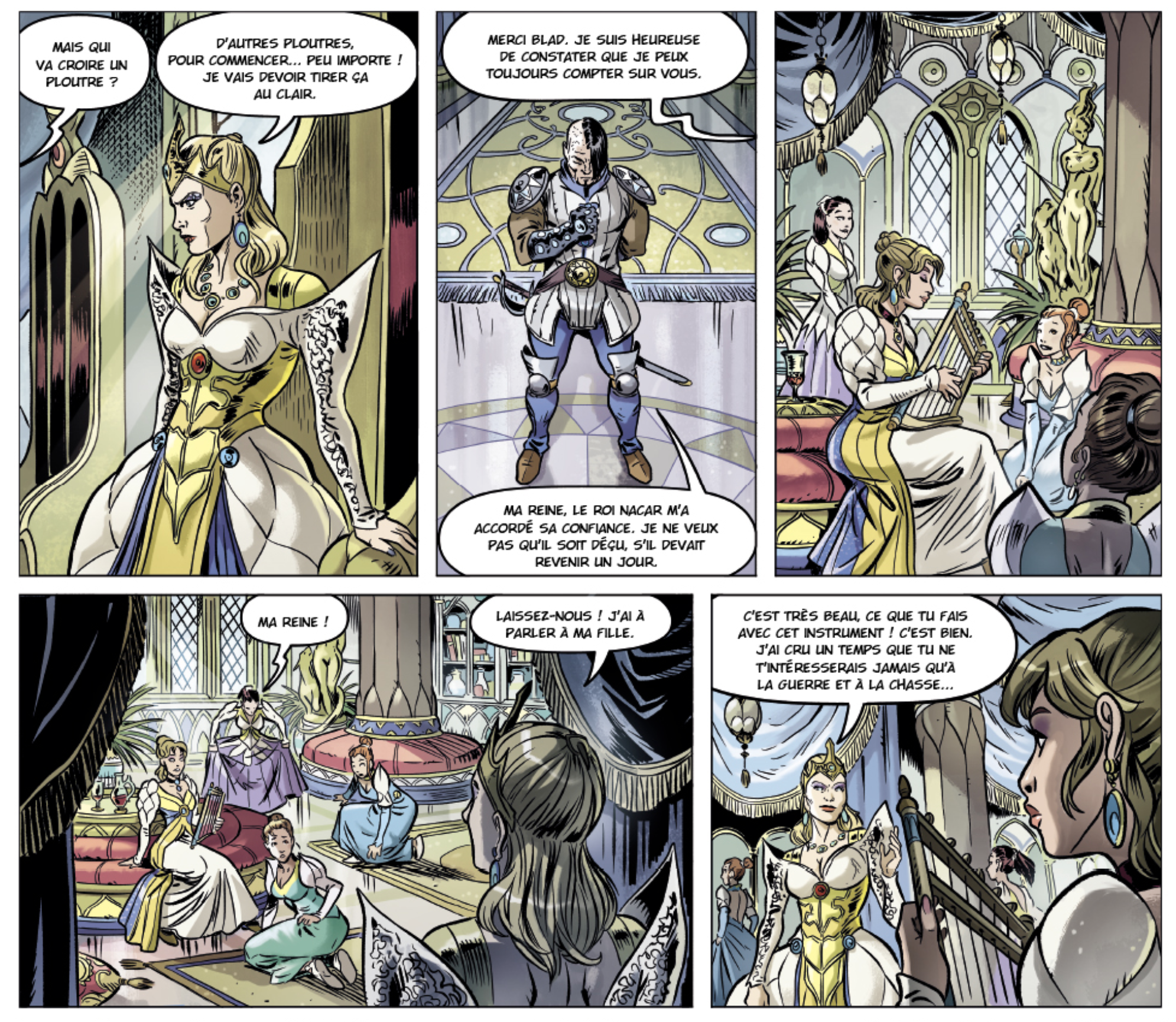 Un conte fantastique où la princesse héroïne est aussi adroite à la harpe qu’au maniement des armes, belle blonde aux yeux verts, aussi sexy que fantasque et inconséquente. Ainsi prend-elle la décision d’aller assassiner MO afin d’éviter la guerre. Une épopée au milieu d’intrigues, de secrets de famille, de pouvoirs surnaturels, d’animaux monstrueux, de créatures à trois yeux marquées de répugnantes pustules. Le dessin est en symbiose parfaite avec cette histoire imaginaire. Un très bon moment de lecture pour ce premier chapitre d’une série de trois tomes.