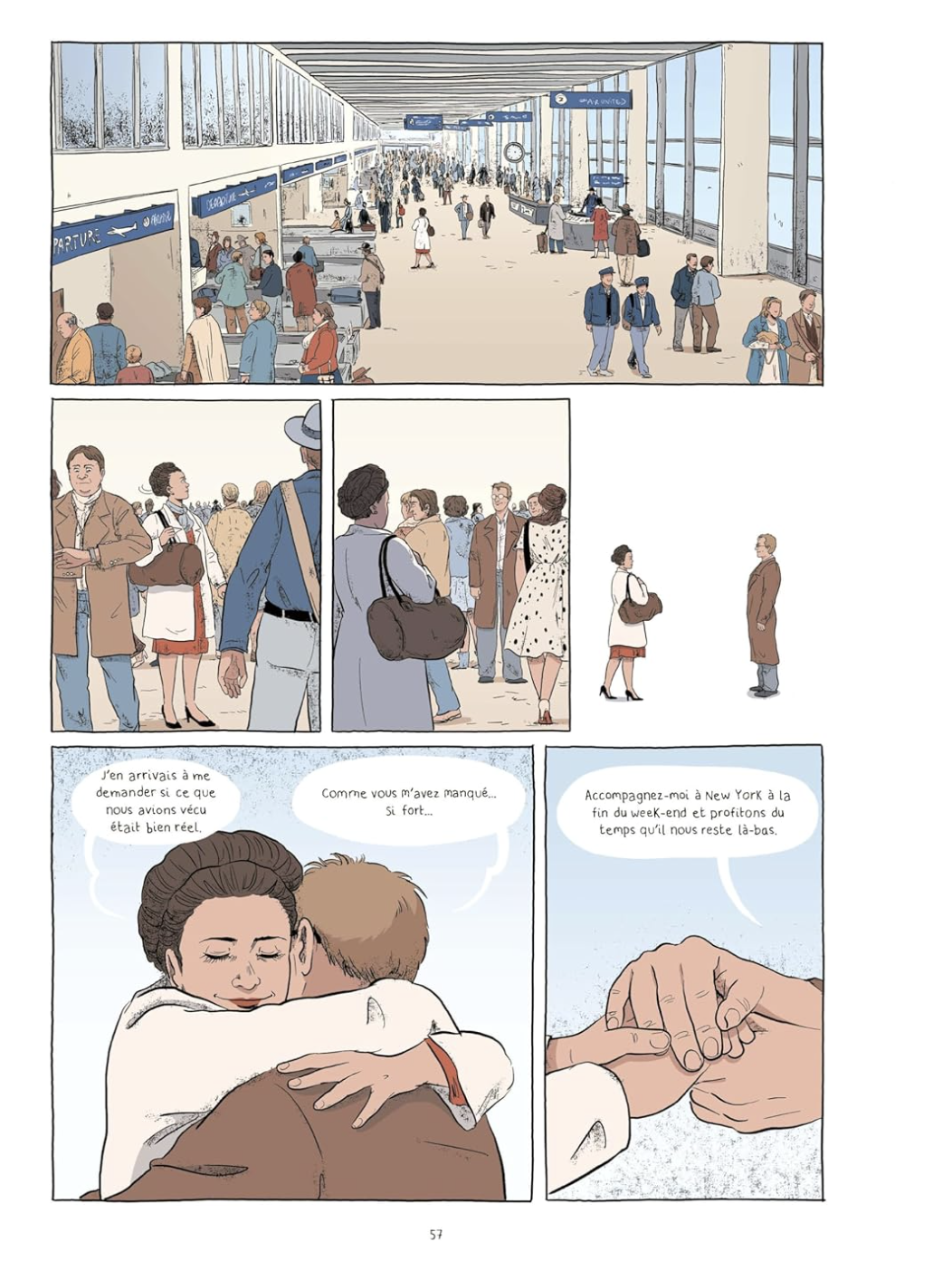 Cet album révèle une Simone de Beauvoir très différente de l’intellectuelle et de la femme de lettres, l’affirmation d’une liberté et de pulsions sexuelles qu’elle revendique. Cette relation va durer prèsque 15 ans, mais Simone de Beauvoir revient toujours à Paris et retrouve avec Sartre la sagesse et la raison d’un couple traditionnel. La passion et l’érotisme des deux amants ont donné deux ouvrages majeurs : « Le deuxième sexe » par Simone de Beauvoir, et “L’homme au bras d’or” par Nelson Algren, deux œuvres où chacun s’est référé de l’autre. Le scénario dévoile avec délicatesse et simplicité un épisode important de la vie des deux protagonistes ; le dessin réaliste et les couleurs suaves servent parfaitement cette histoire chaudement érotique. Un très bon moment de lecture.
