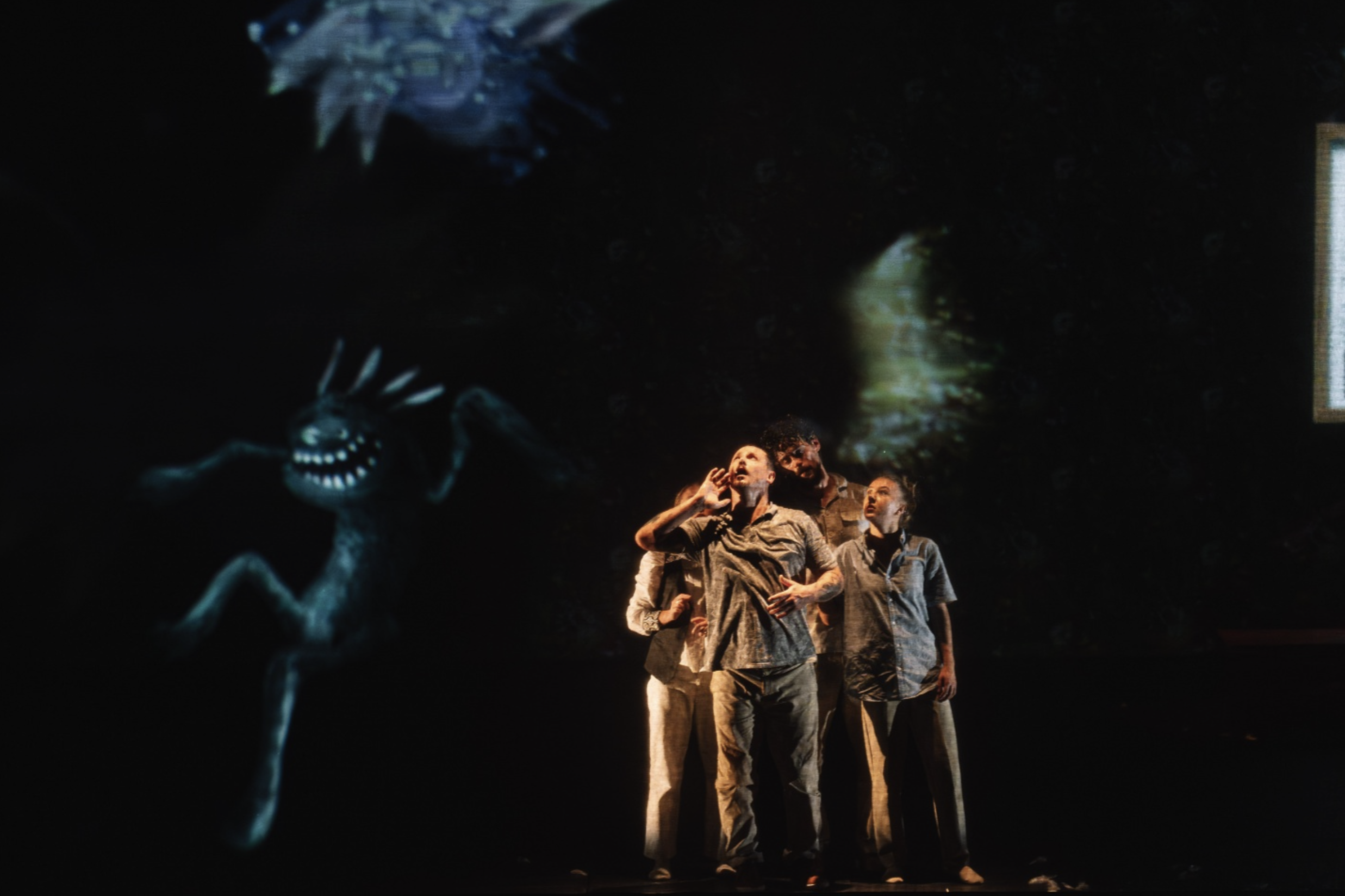 erikaPar Julie Cadilhac – Lagrandeparade.com/ Tout débute sous une couette rieuse. C’est l’heure des rêves merveilleux et un petit garçon s’endort, rejoint très vite par trois copains complices…copains imaginaires? camarades du quotidien qui se sont invités dans ses songes? Ils mènent en tous cas une ronde joyeuse et réagissent en jeux chorégraphiques aux caprices de cette nuit fantastique peuplée de monstres gentils, de créatures marines fascinantes, de complexes mécanismes horlogers, de végétation luxuriante…