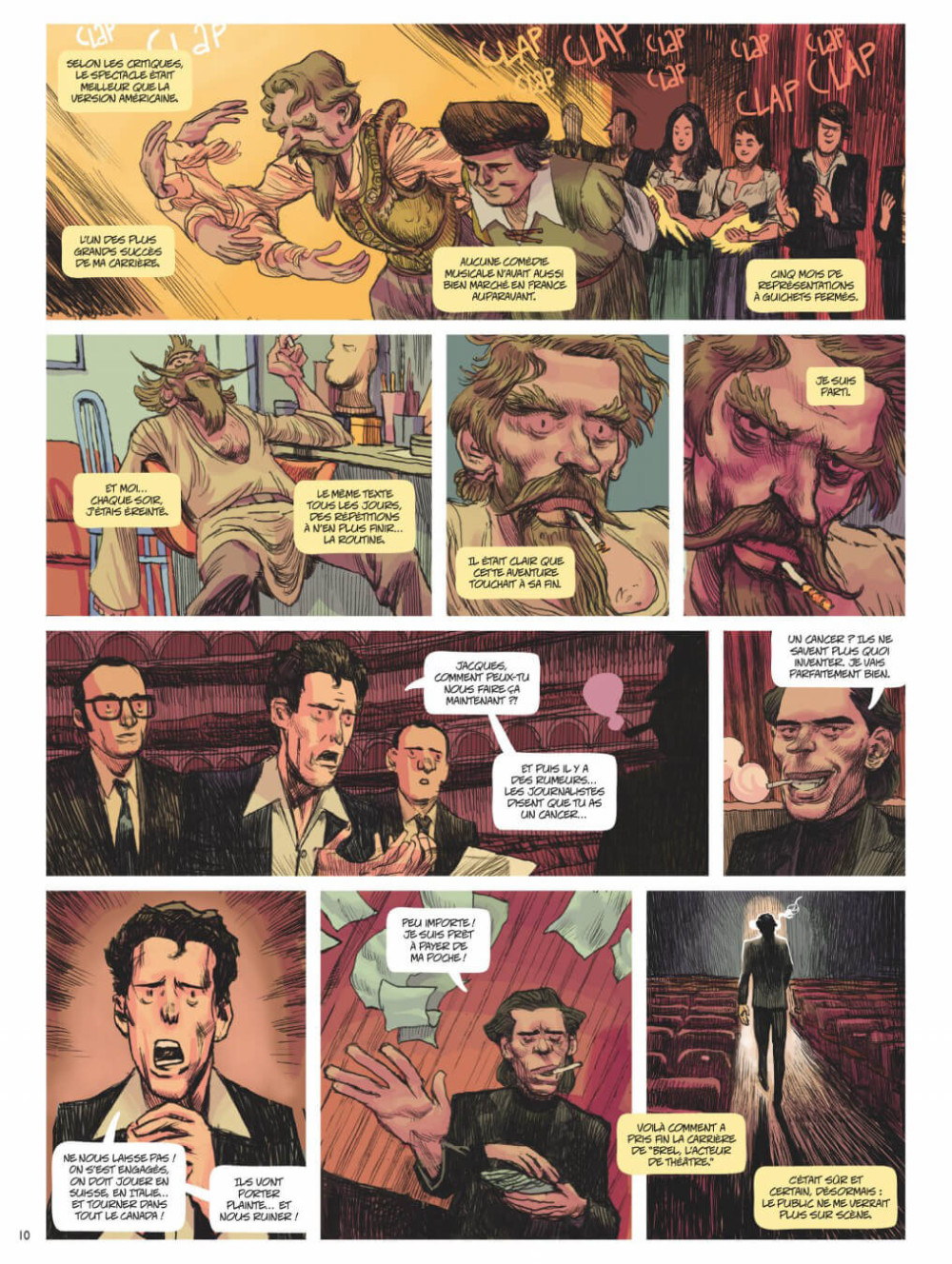 Salva Rubio, toujours avec la même délicatesse et intelligence que dans les tomes précédents, nous emporte dans les dernières années de ce chanteur incroyable aux multiples facettes et au génie terrassant. Il montre avec une belle sensibilité ce que fut cet être au caractère flamboyant marqué par son enfance, par ses rencontres amicales et professionnelles, par ses amours. L’épilogue est émouvant, lumineux. Ce troisième tome se dévore littéralement, que l’on soit fan ou pas de l’artiste. La vie de Jacques Brel est une aventure palpitante et ses qualités (et défauts) en font un héros passionnant à suivre.