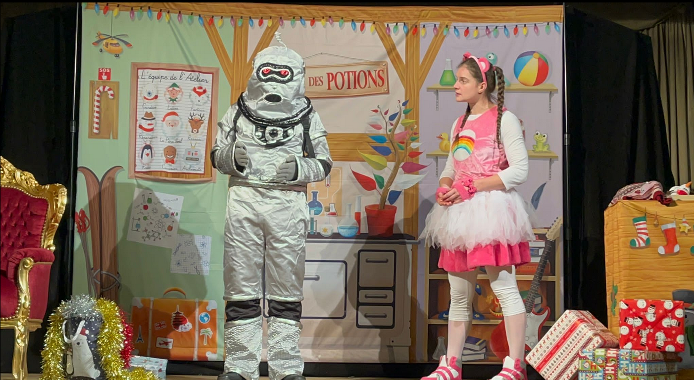 C’est une petite fille qui gagne et très vite, tout va partir de travers. Le Père Noël, saupoudré d’une préparation magique, se met à vouloir réaliser tous ses rêves et en oublie son travail! Heureusement que la petite fille, espiègle et bavarde à souhait, soutenue par le public, va remettre tout cela en ordre! Vous imaginez un Noël sans cadeaux!