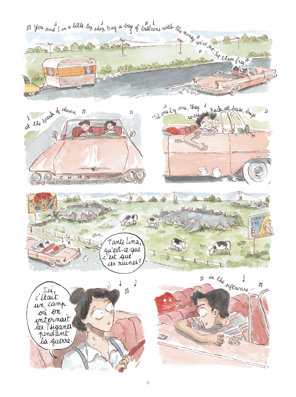Johann G. LOUIS imagine une autofiction de qualité tant elle danse avec grâce sur le fil d’une vérité qui mêle à plaisir la réalité et la fiction. Il évoque avec délicatesse le deuil, le chagrin amoureux, l’éveil à la sexualité, la difficulté à assumer ses préférences sexuelles, les tabous familiaux et les réflexes peu glorieux de beaucoup vis à vis de l’étranger qui toujours effraie. Son trait fin et sensible, ses couleurs à l’aquarelle plongent le lecteur dans un univers familier, accueillant. Manouche Manouche offre une parenthèse récréative dans cet été ensoleillé de 1984, teintée toutefois de notes sombres que le lecteur ado-adulte ne manquera pas de relever pour mieux s’en élever.