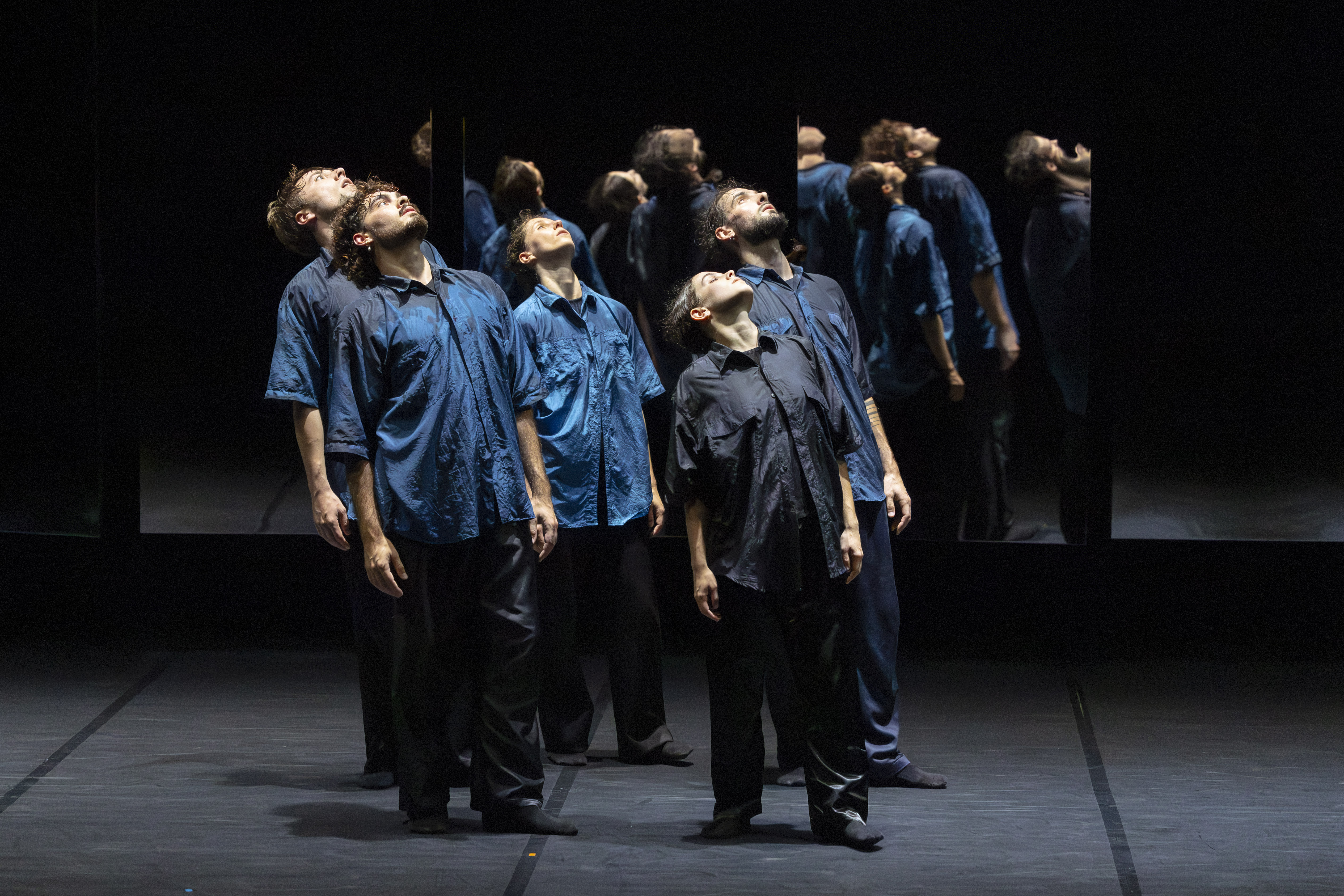 À l’image des silhouettes qui se reflètent dans les miroirs installés en fond de scène (déjà chargés des visages statiques du public spectateur), nous embarquons pour réalité parallèle : celle qui matérialise l’invisible, où âmes et corps piégés se libèrent de leurs propres images et mouvements afin de vivre une aventure collective et… humaine.
